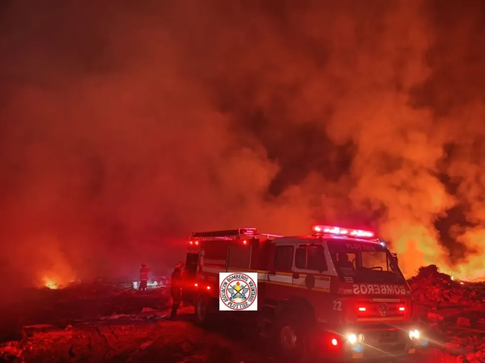 Plottier.– Durante la madrugada de este jueves 28 de agosto, alrededor de las 2:17, los Bomberos Voluntarios de Plottier intervinieron en un incendio registrado en la zona del basural, en las inmediaciones del pozón.