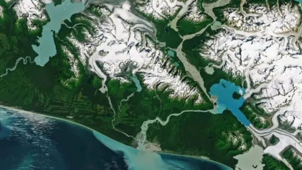 Imágenes satelitales de la NASA confirmaron la formación de una nueva isla en el sureste de Alaska, producto del retroceso del glaciar Alsek y la expansión del lago homónimo.