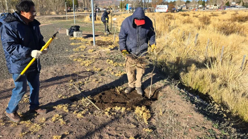 Este martes 9 de septiembre, personal del Área de Espacios Verdes y Arbolado Urbano llevó adelante nuevas tareas de forestación en Piedra del Águila. En esta ocasión, se plantaron árboles en el Portal de Ingreso, un punto estratégico de la localidad que recibe a vecinos y visitantes.
