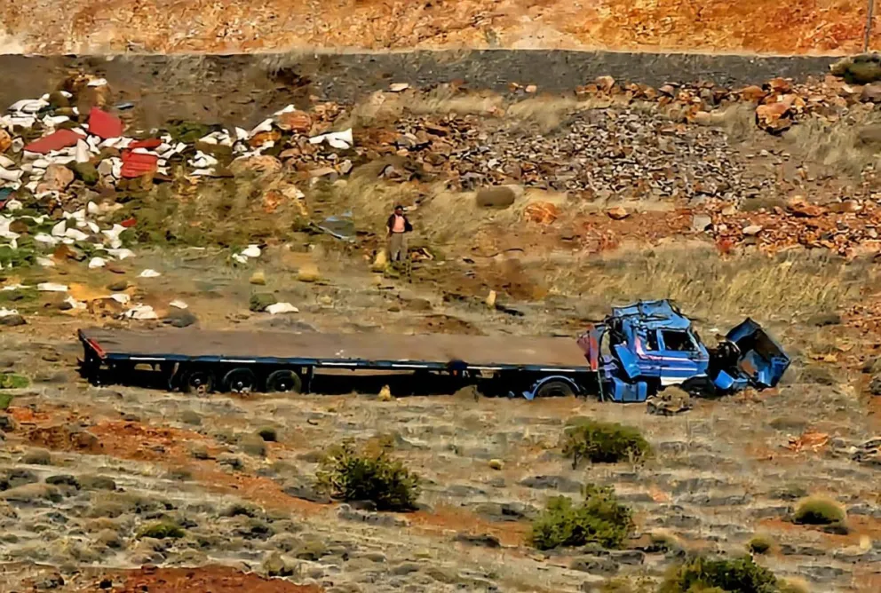 Un camión volcó este martes en la ruta provincial 43, en cercanías del cartel de ingreso a la localidad de Andacollo.
