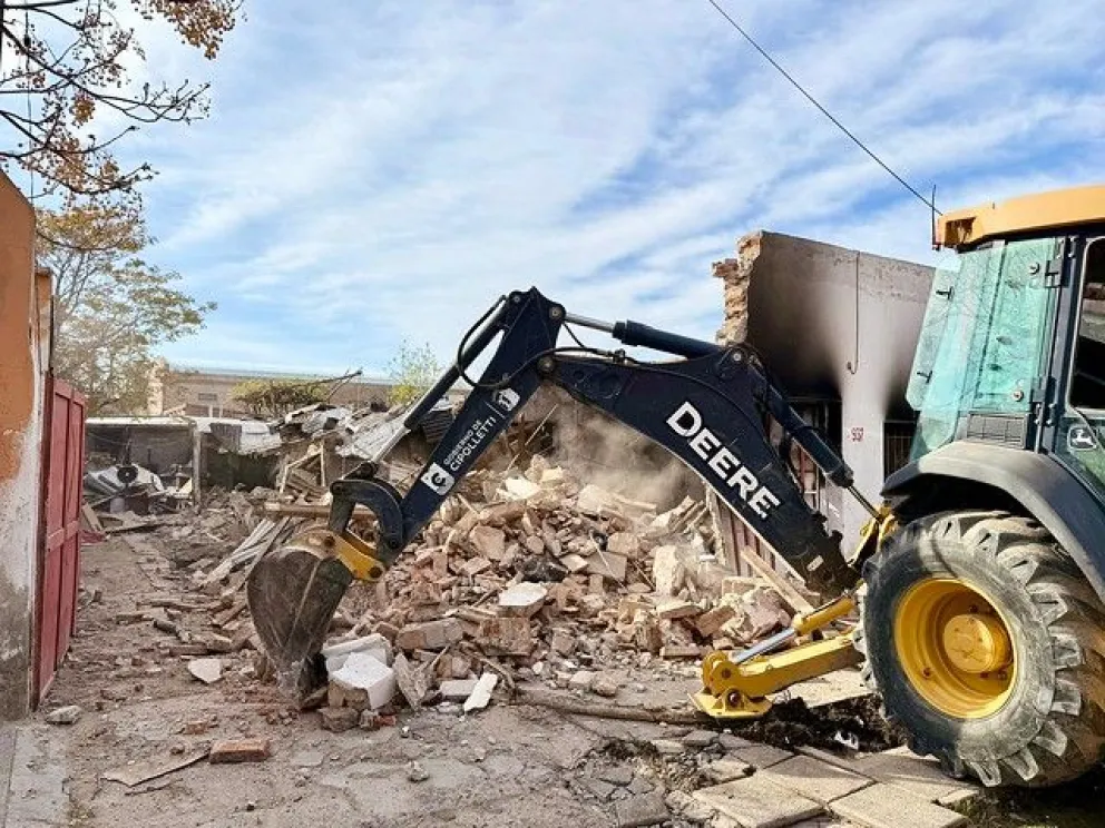 El municipio de Cipolletti, con apoyo de la Policía de Río Negro, demolió un aguantadero en barrio Del Trabajo, ubicado en Pagano 937, donde se registraba venta de drogas y presencia de delincuentes.