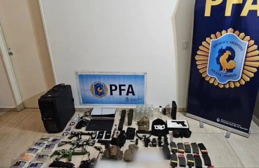 La Policía Federal, con una orden de la jueza María Romilda Servini, allanó la casa del adolescente, ubicada sobre avenida Juan Bautista Alberdi, y encontró un arsenal de armas y elementos peligrosos: réplicas de pistolas, un revólver, un subfusil con inscripciones de tiradores en masa como Brenton Tarrant y Anders Breivik, cuchillos, municiones, gas pimienta y botellas tipo “molotov”.