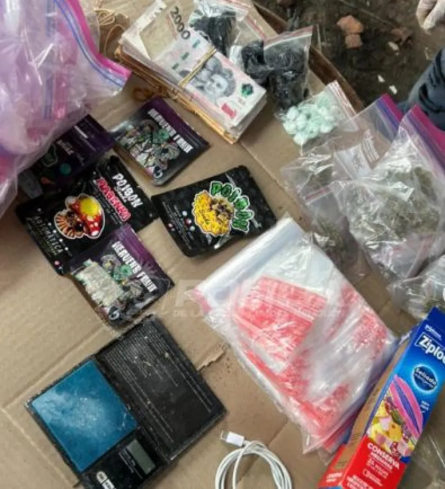 Dentro de una bolsa de tela blanca, los uniformados hallaron más de $400.000 en efectivo, 56 envoltorios con sustancia similar a clorhidrato de cocaína, 43 envoltorios de cannabis sativa, cinco paquetes de semillas, bolsas de nylon y una balanza de precisión.