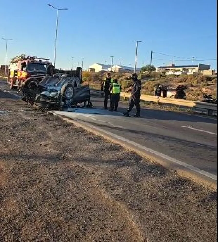Según las primeras informaciones, el impacto se produjo en circunstancias que aún se investigan, y uno de los rodados terminó volcando sobre la calzada, lo que generó demoras en el tránsito en ambos sentidos.