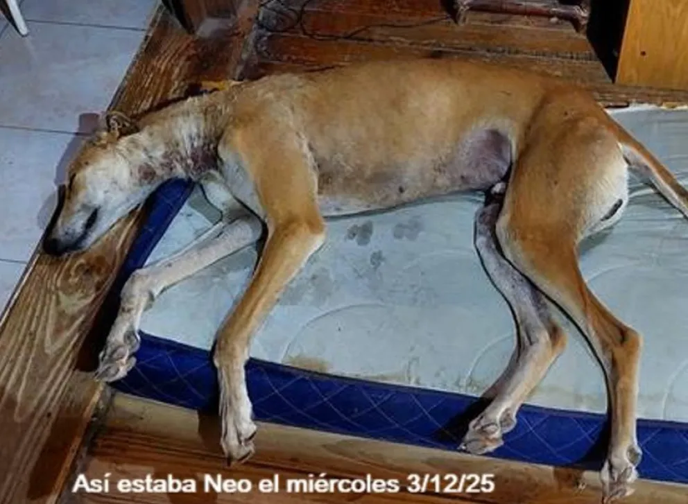 Según relataron durante el operativo, el galgo había sido rescatado previamente por una vecina, Violeta, quien dio aviso de la situación para poder garantizar que el animal recibiera atención veterinaria y un nuevo destino lejos del lugar donde era maltratado.