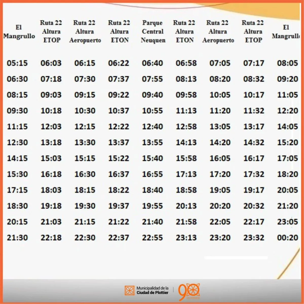 La Municipalidad de Plottier anunció que desde el 26 de diciembre entrarán en vigencia los horarios de verano para el transporte público de la ciudad, una modificación habitual que se implementa durante la temporada estival.