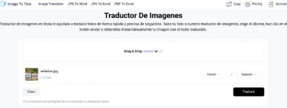 Hay varios traductores de imágenes disponibles en línea. La mayoría de estas herramientas funcionan de la misma manera. Sin embargo, elegí el traductor de imagenes para demostrar el proceso. Así es como funciona realmente: