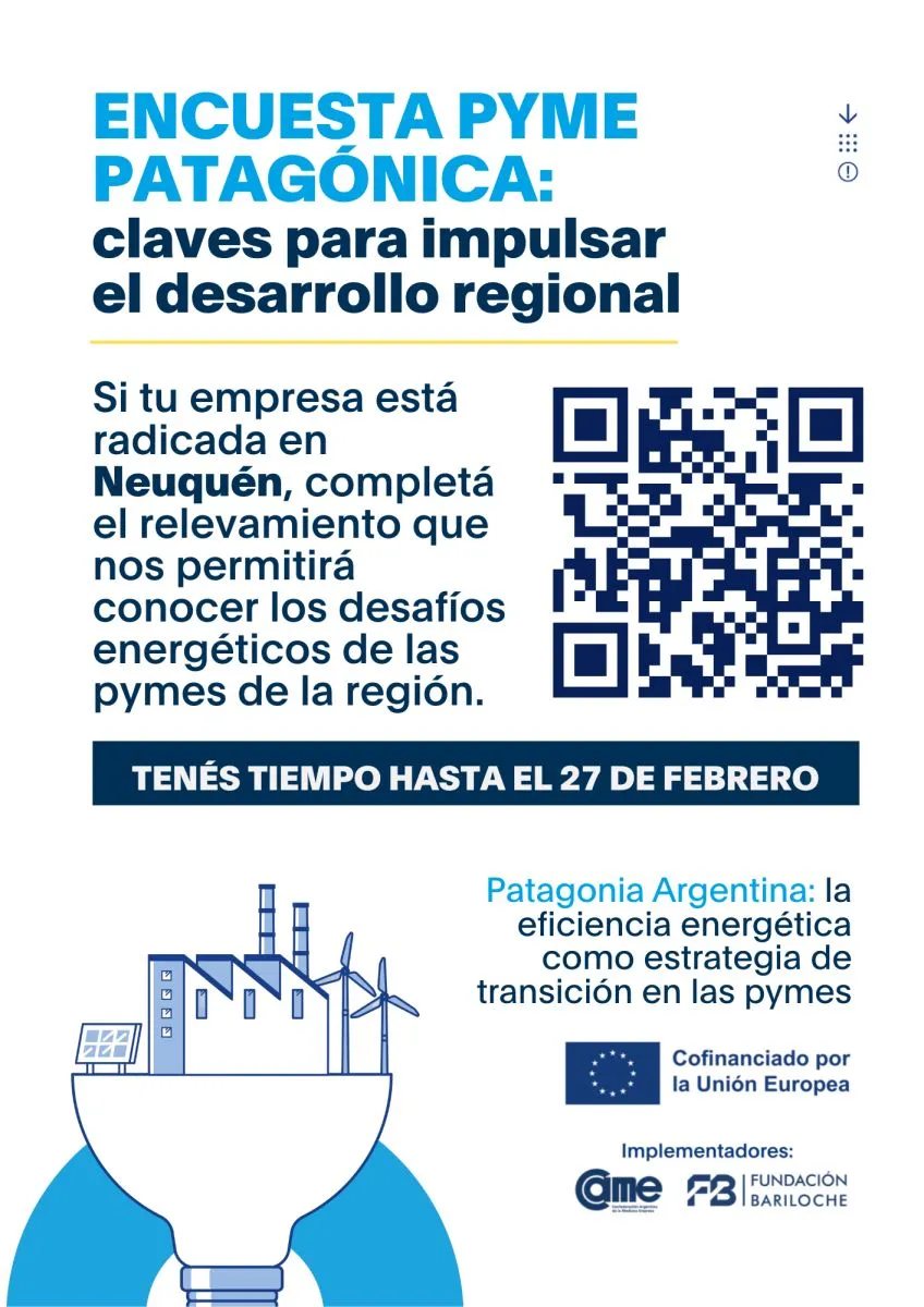 En el marco del proyecto “Patagonia argentina: la eficiencia energética como estrategia de transición en las pymes”, CAME y Fundación Bariloche, cofinanciados por la Unión Europea, lanzaron la Encuesta pyme patagónica: claves para impulsar el desarrollo regional.