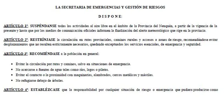 El Gobierno provincial reiteró la importancia de respetar las indicaciones oficiales ante este escenario extremo, destacando que la precaución y responsabilidad social son esenciales para reducir riesgos.