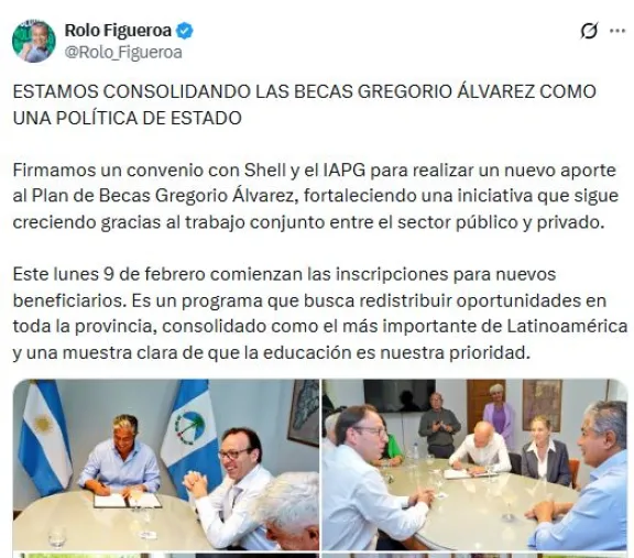 Neuquén.- El Gobierno provincial firmó un nuevo convenio con Shell y el IAPG para aportar al Plan de Becas Gregorio Álvarez, fortaleciendo una política educativa que continúa creciendo gracias a la colaboración entre el sector público y privado.
