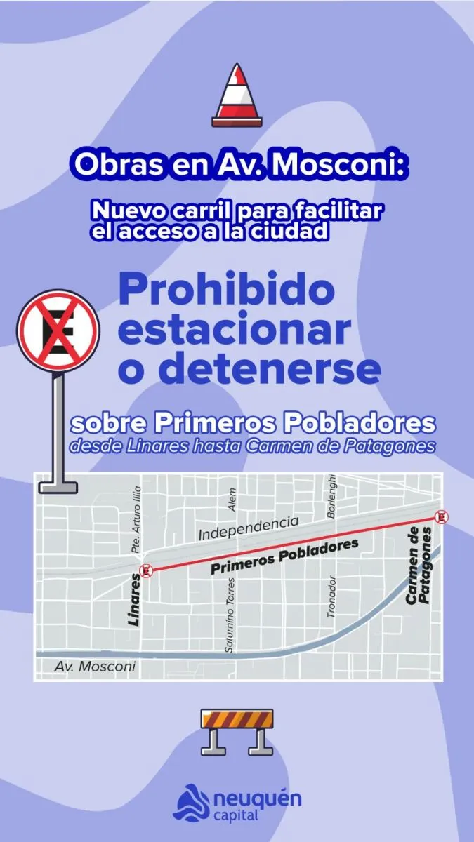 El nuevo carril permite mejorar la circulación en sentido este-oeste mientras continúan las tareas centrales sobre la traza principal. Se mantiene la prohibición de estacionamiento y detención en el sector norte de Primeros Pobladores, y se solicita a los conductores circular con precaución, respetar la señalización y extremar los cuidados, especialmente para tránsito pesado.