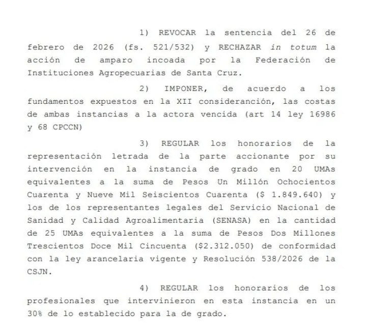En su fallo, la Cámara Federal de Apelaciones de Comodoro Rivadavia consideró que el riesgo sanitario vinculado a la fiebre aftosa es “mínimo” y señaló que el “riesgo cero” es biológicamente inalcanzable, respaldando los criterios técnicos aplicados por el Senasa.