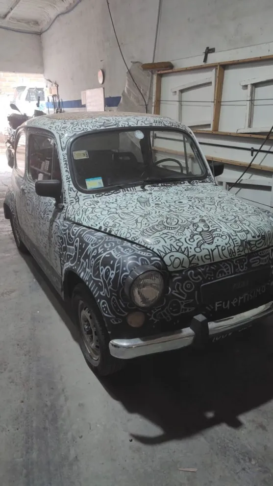 Arte urbano neuquino Tincho Villalba transformó un Fiat 600 en una obra que recorrerá las calles de Neuquén