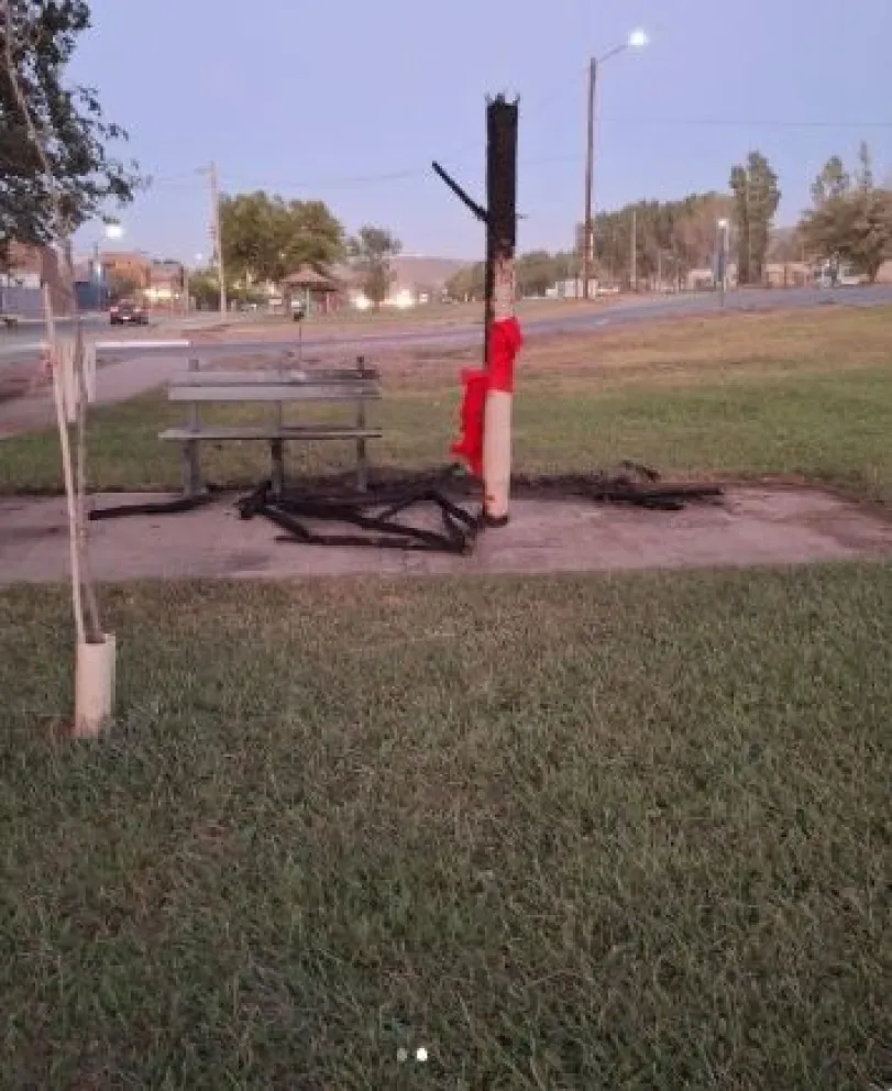 Vandalismo en el espacio público Incendiaron un toldo del bulevar de Añelo y la Municipalidad denunció el hecho