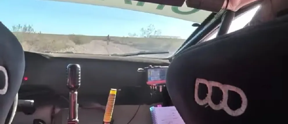 Tensión en plena competencia VIDEO Imprudencia en la ruta de la Vuelta de la Manzana: un ciclista cruzó mientras pasaba un auto de rally a alta velocidad