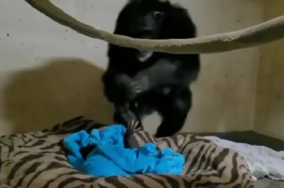 Pura emoción El conmovedor momento en que una mamá chimpancé ve a su cría recuperada tras días en terapia intensiva