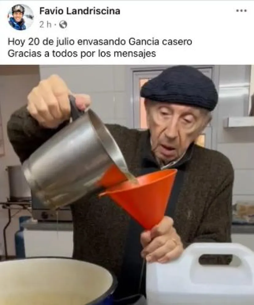 Dieron por muerto a Landriscina: su hijo lo desmintió y mostró al humorista envasando Gancia