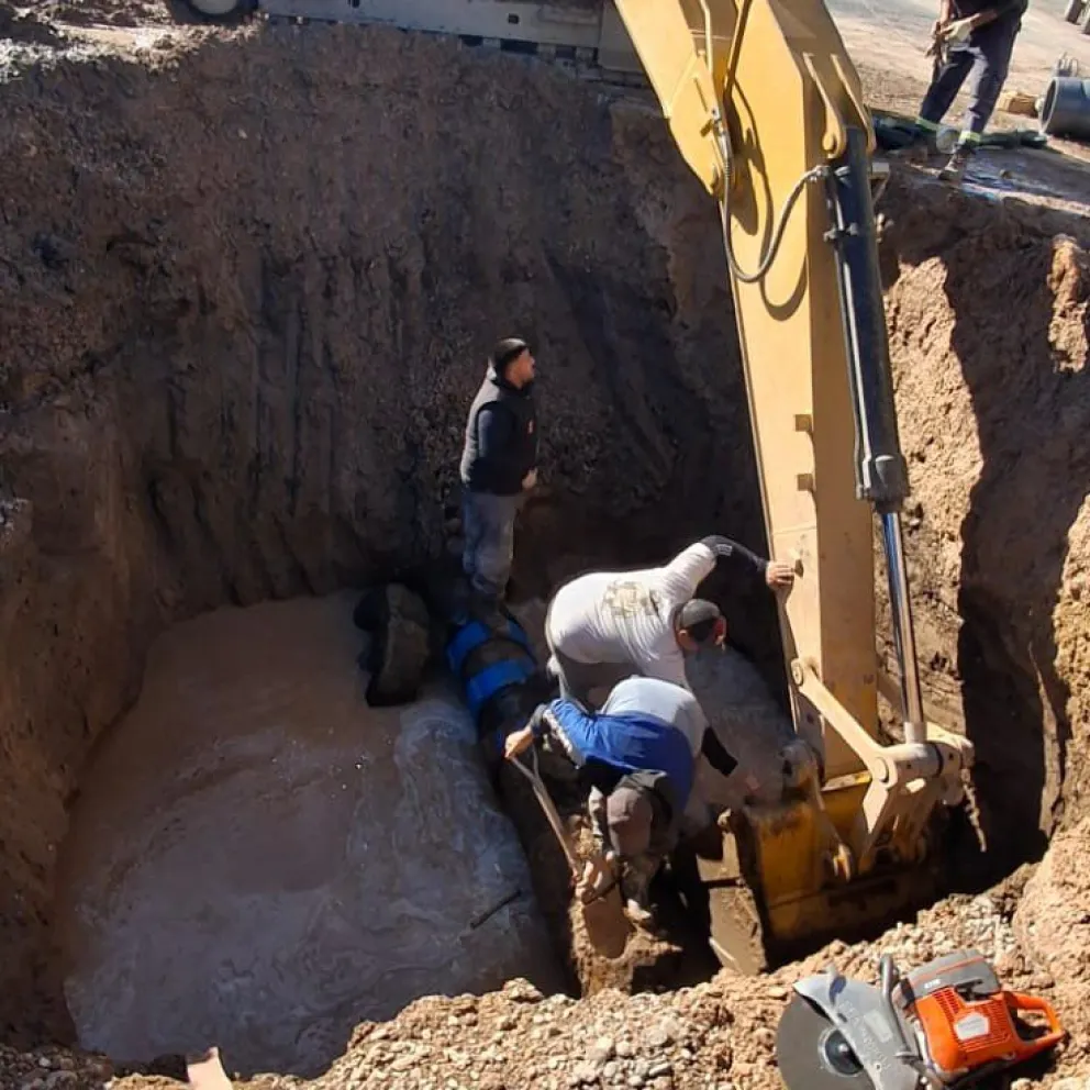 Servicio de agua Cinco Saltos: repararon el acueducto principal tras 20 horas de trabajo ininterrumpido
