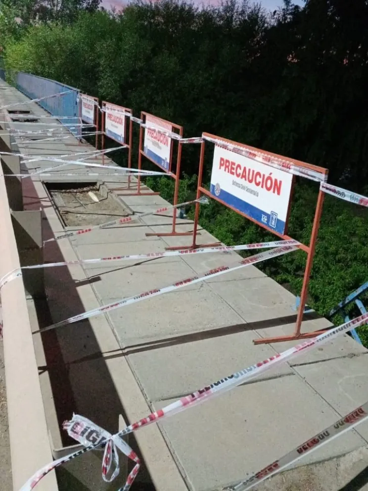 Tránsito restringido Cayeron barandas en el puente Centenario–Cinco Saltos y trabajan para repararlas