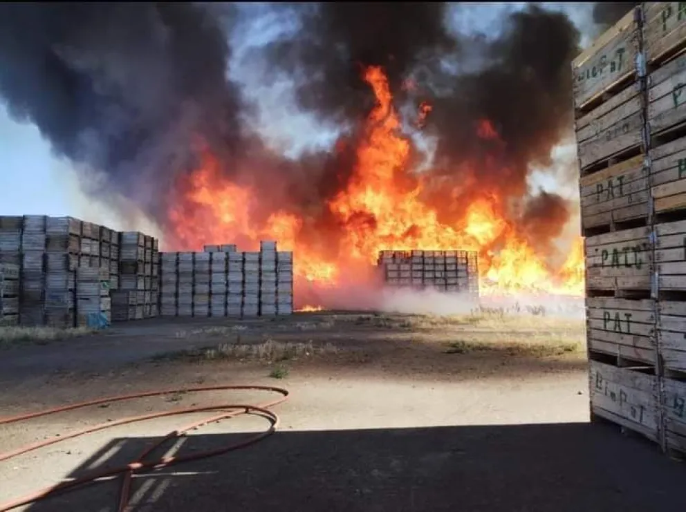 Incendio en chacra frutícola Alrededor de 30 bomberos trabajan en un incendio en Moño Azul en Villa Regina
