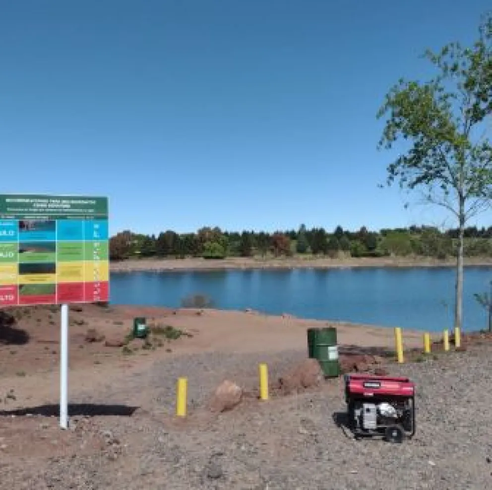 Instalan nueva cartelería sobre cianobacterias en el Embalse Ramos Mexía para alertar a vecinos y turistas