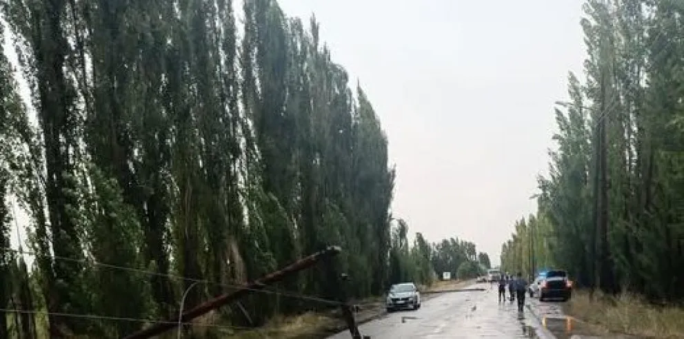 Temporal en el Alto Valle Fernández Oro: rescataron un auto atrapado por postes de luz caídos durante la tormenta
